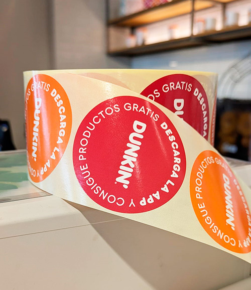Nosotros fabricamos etiquetas en bobina, con una impresión nítida, aplicamos barniz anti‑arañazos y si lo necesitas, también te ofrecemos el servicio de diseño gráfico.