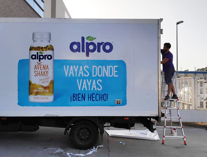 Podemos hacerlo con serigrafía gran formato, con vinilo en impresión digital, vinilo de corte asistido por ordenador, pintura, o incluso hacer una combinación de todas ellas.